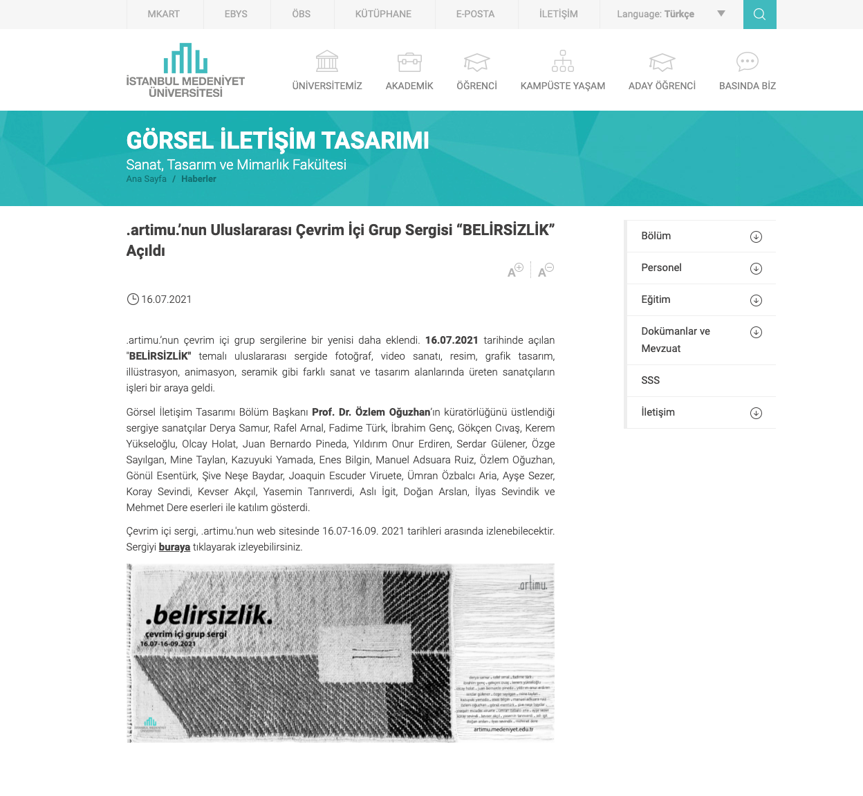 Anunci de l’exposició al web de la Universitat: https://gorseliletisim.medeniyet.edu.tr/tr/haberler/artimunun-uluslararasi-cevrim-ici-grup-sergisi-belirsizlik-acildi