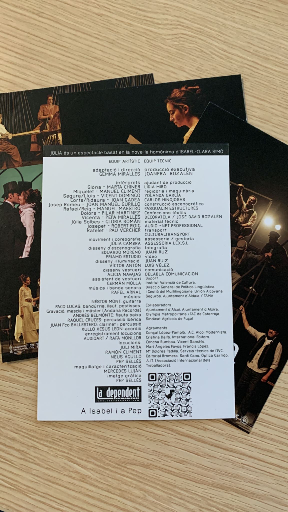 L’Institut Valencià de Cultura presenta l’estrena mundial de ‘Júlia’, obra basada en la novel·la d’Isabel-Clara Simó de títol homònim, que estarà en el Teatre Principal de València del 19 al 28 de novembre.