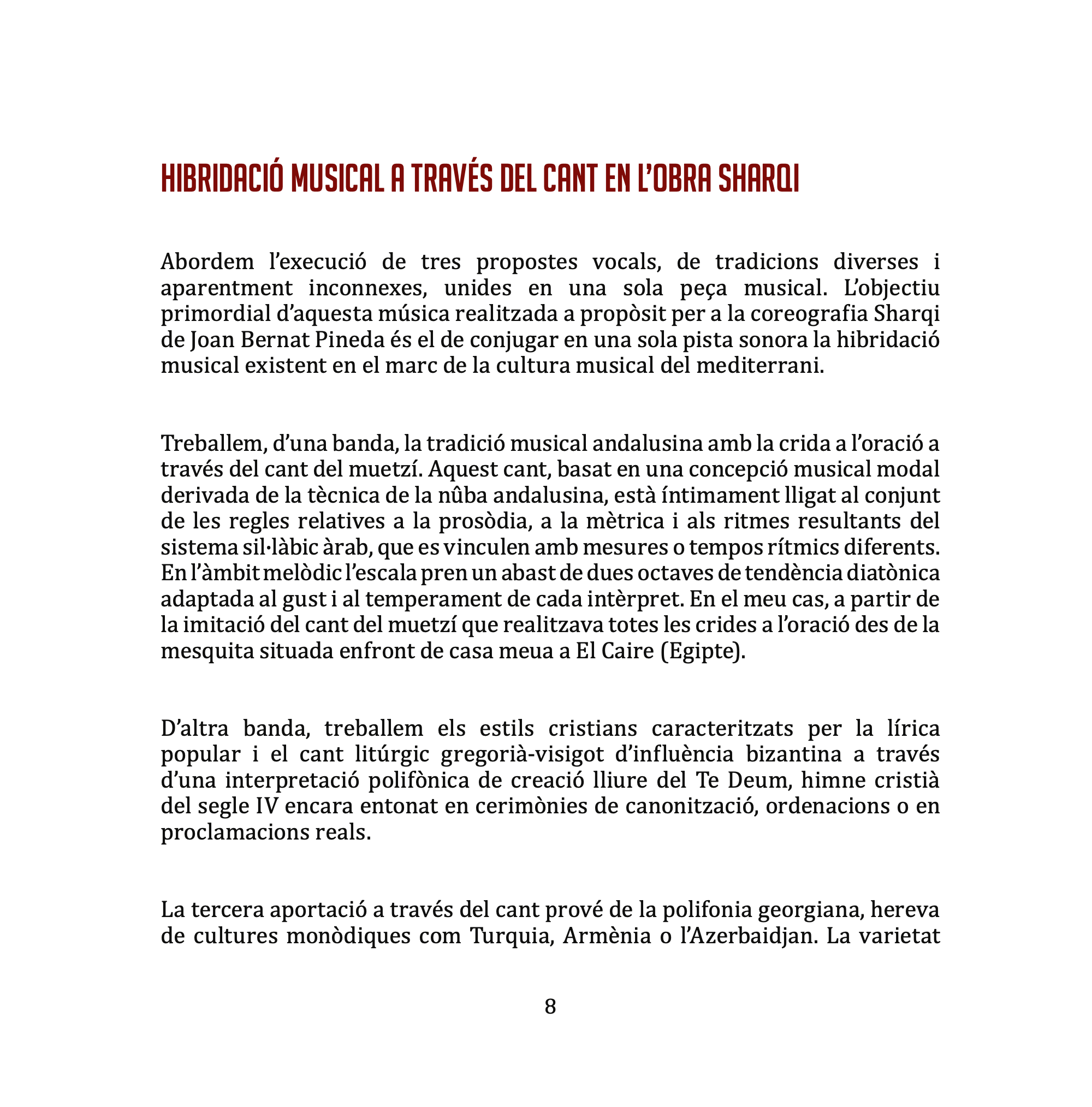 El cap de setmana del divendres 2 i dissabte 3 de Setembre en el Gran Riurau de Jesús Pobre, dins de la secció de Film de Dansa del Riu Rau Film Festival, es presentarà el treball SHARQI realitzat pel grup “Film de Dansa Lab”, treball fora de concurs i que està produït per l’Associació Escola de Cinema Riurau i El Riurau Film Festival, amb l’especial col·laboració del departament de Cultura de l’Ajuntament de Dénia a més d’altres col·laboradors. La meua aportació al projecte es centra en la composició de la música i en un article parlant d’aquesta composició al catàleg, que duu el títol “Hibridació musical a través del cant en l’obra Sharqi”.