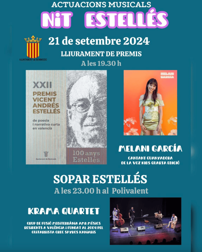 Amb la celebració posterior (a partir de les 22:30 hores) del Sopar Estellés al Polivalent de Benimodo, amb l’actuació del grup KRAMA.