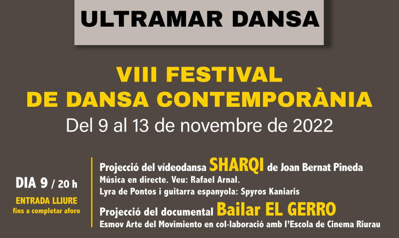 VIII FESTIVAL DE DANSA CONTEMPORÀNIA / FESTIVAL DE DANZA CONTEMPORÁNEA.Organitza/organiza: Ajuntament de Dénia. Cultura. Dia 9 novembre, 20 h ENTRADA lliure fins a completar aforo. “SHARQI” 15’.Coreografia i interpretació: Joan Bernat Pineda.Música: Rafael Arnal, veu; Spyros Kaniaris, Lyra de Pontos i guitarra espanyola.Projecció film de dansa Escola de Cinema Riurau.Sharqui reflecteix i recupera de manera [...]