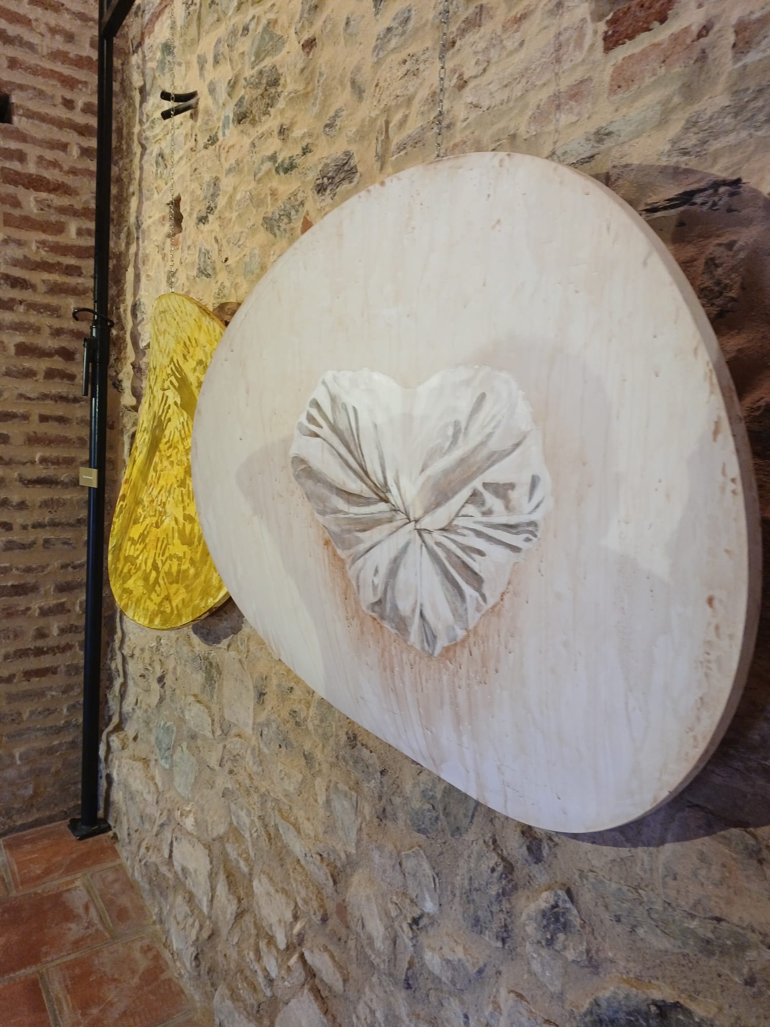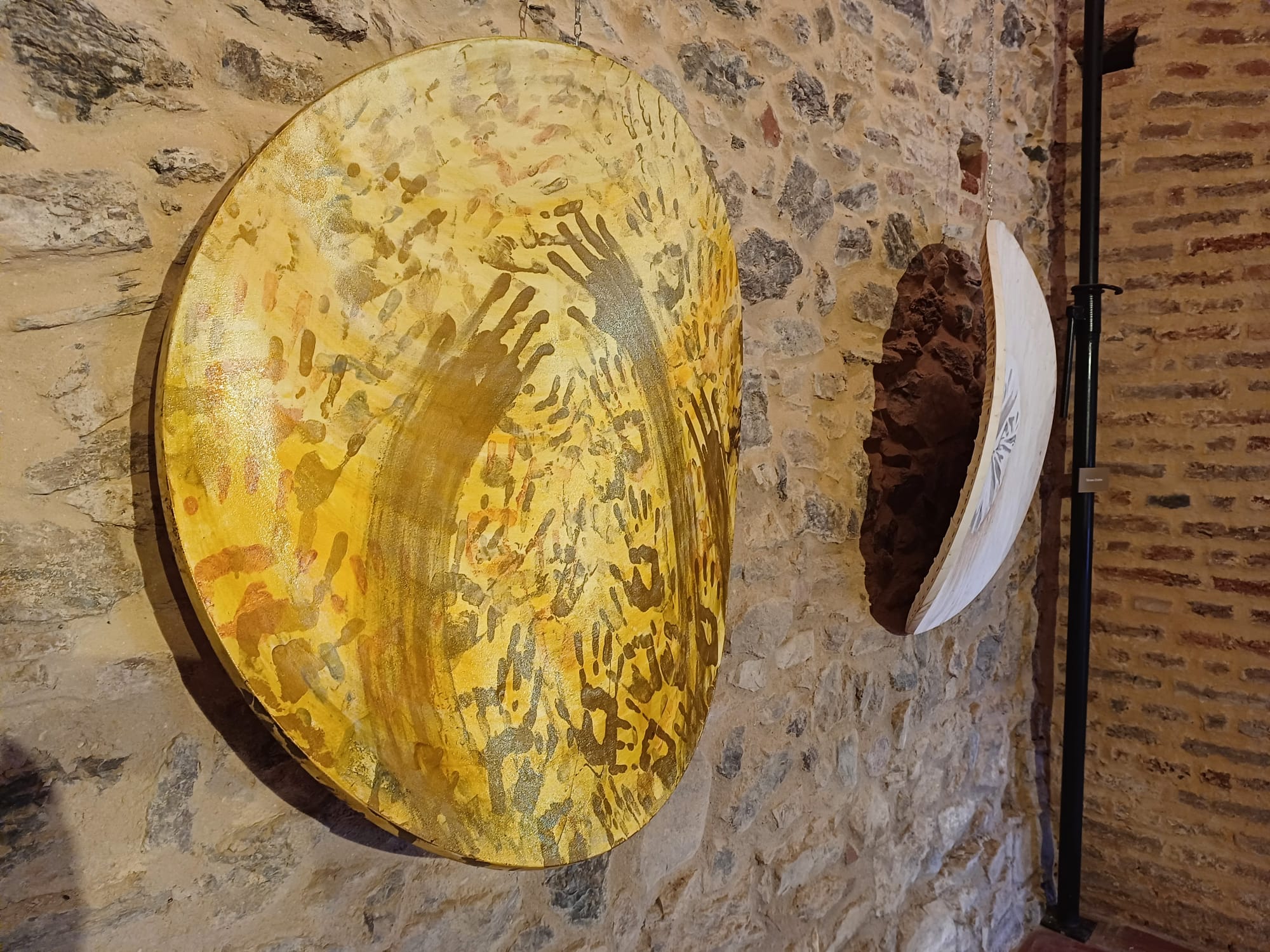 Llenços redons danados i deformats per la humitat i el fang. Suport inicial intervingut en primer lloc per la DANA a l’octubre 2024 a València, on la crisi mediambiental danyada per l’acció de l’home queda patent. El color serà el de la pinzellada amb el propi Fang. Acció solidària des de la cultura, per a ajudar els afectats a eixir del fang: Tota pedra fa paret. Llenços donats per Totenart. Títol de la col·lecció: “Llenços DANADOS”.
